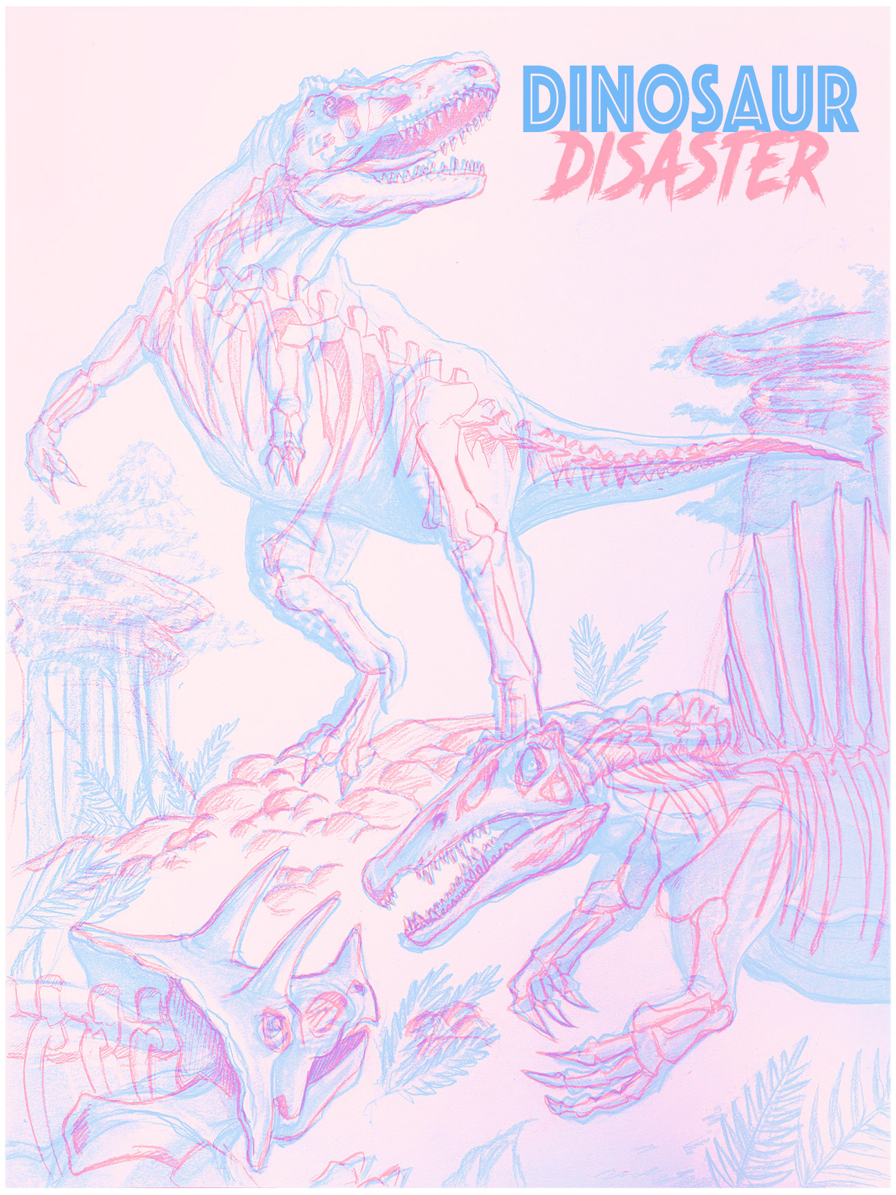 This poster reacts with red/blue 3D glasses. Looking through the red lens filters out the red lines revealing one illustration, while looking through the blue lens reveals another. I initially rendered the two images in traditional media and digitally combined and altered the image to create a fun interactive final illustration.